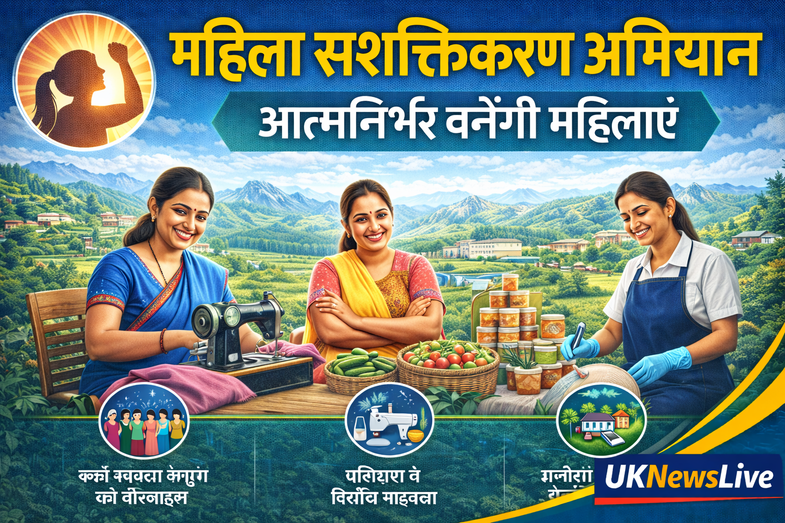सरकार महिलाओं को विभिन्न क्षेत्रों में प्रशिक्षण प्रदान करेगी, जैसे सिलाई, हस्तशिल्प और फूड प्रोसेसिंग।