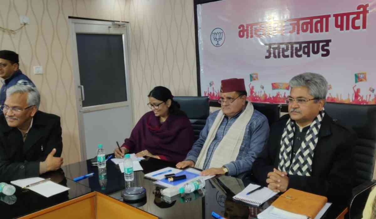 पार्टी मुख्यालय में हुई बैठक की जानकारी देते हुए प्रदेश मीडिया प्रभारी मनवीर सिंह चौहान ने बताया कि बैठक में मुख्यमंत्री पुष्कर सिंह धामी वर्चुअली शामिल हुए। बैठक में पार्टी प्रदेश प्रभारी श्री दुष्यंत कुमार गौतम, सह प्रभारी श्रीमती रेखा वर्मा, प्रदेश अध्यक्ष महेंद्र भट्ट, पूर्व मुख्यमंत्री डॉ रमेश पोखरियाल निशंक, त्रिवेंद्र सिंह रावत, विजय बहुगुणा, तीरथ सिंह रावत, गढ़वाल सांसद अनिल बलूनी, नैनीताल सांसद अजय भट्ट, पूर्व प्रदेश अध्यक्ष मदन कौशिक, प्रदेश महामंत्री संगठन अजेय कुमार, प्रदेश महामंत्री आदित्य कोठारी, खिलेंद्र चौधरी, कैबिनेट मंत्री धन सिंह रावत, प्रदेश उपाध्यक्ष कुलदीप कुमार महिला मोर्चा अध्यक्ष श्रीमती आशा नौटियाल उपस्थित रहे।