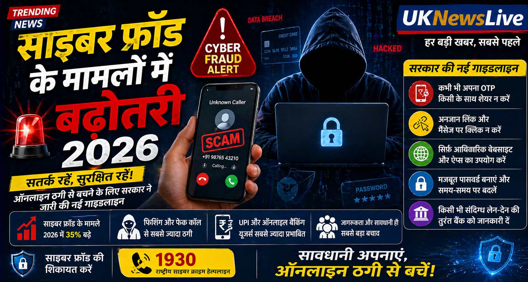 इसमें OTP शेयर न करने, अनजान लिंक से बचने और सुरक्षित ऐप्स का उपयोग करने की सलाह दी गई है।