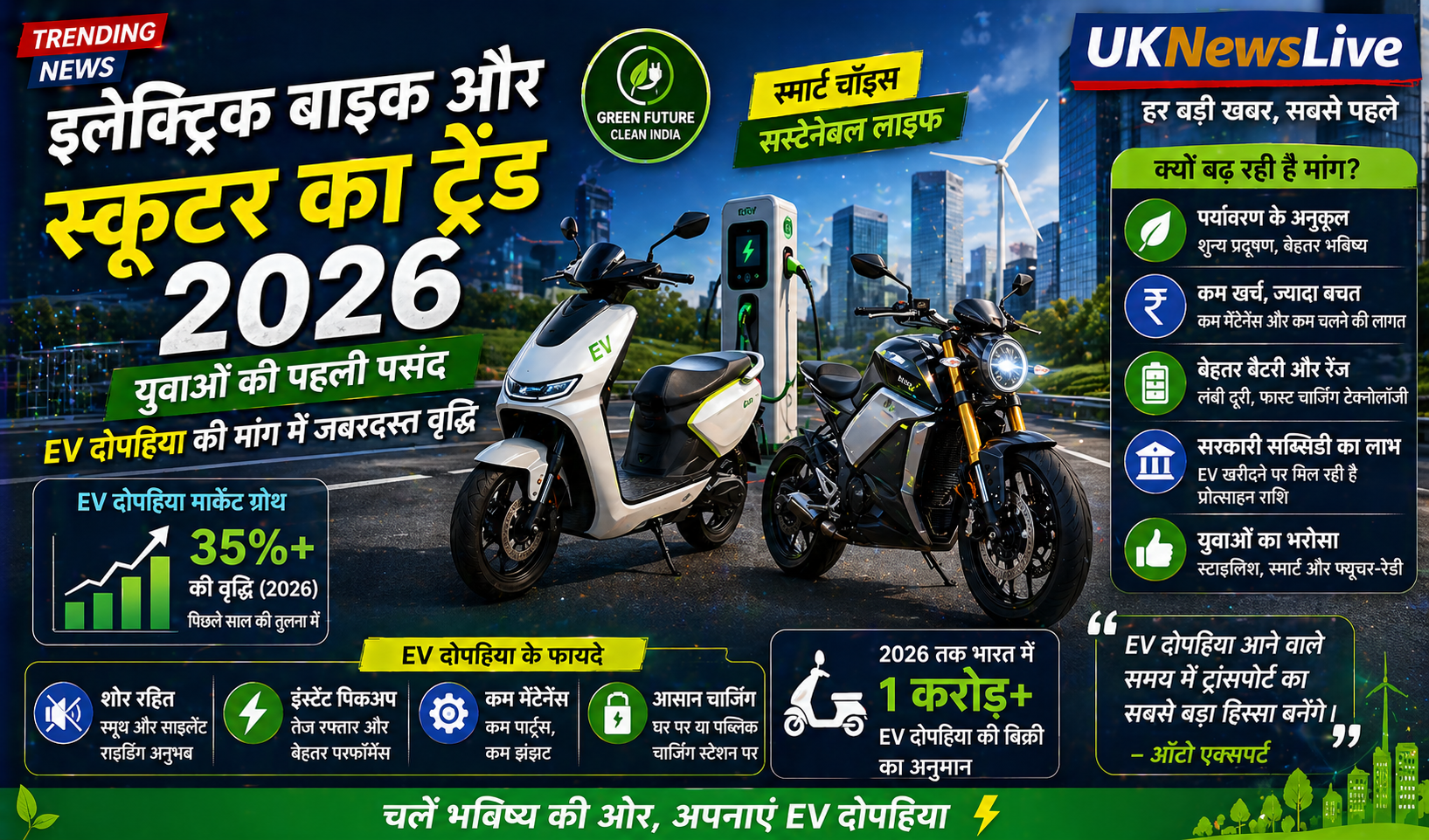 इलेक्ट्रिक बाइक और स्कूटर का यह ट्रेंड भारत को ग्रीन मोबिलिटी की ओर तेजी से ले जा रहा है।