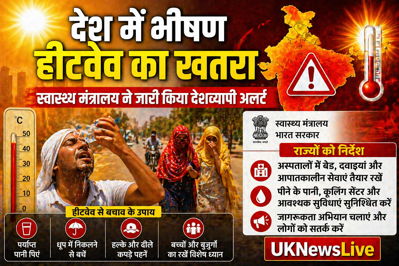 इसके साथ ही राज्यों को निर्देश दिया गया है कि सार्वजनिक स्थानों पर पीने के पानी की व्यवस्था, कूलिंग सेंटर और जागरूकता अभियान चलाए जाएं, ताकि लोगों को गर्मी से बचाया जा सके।