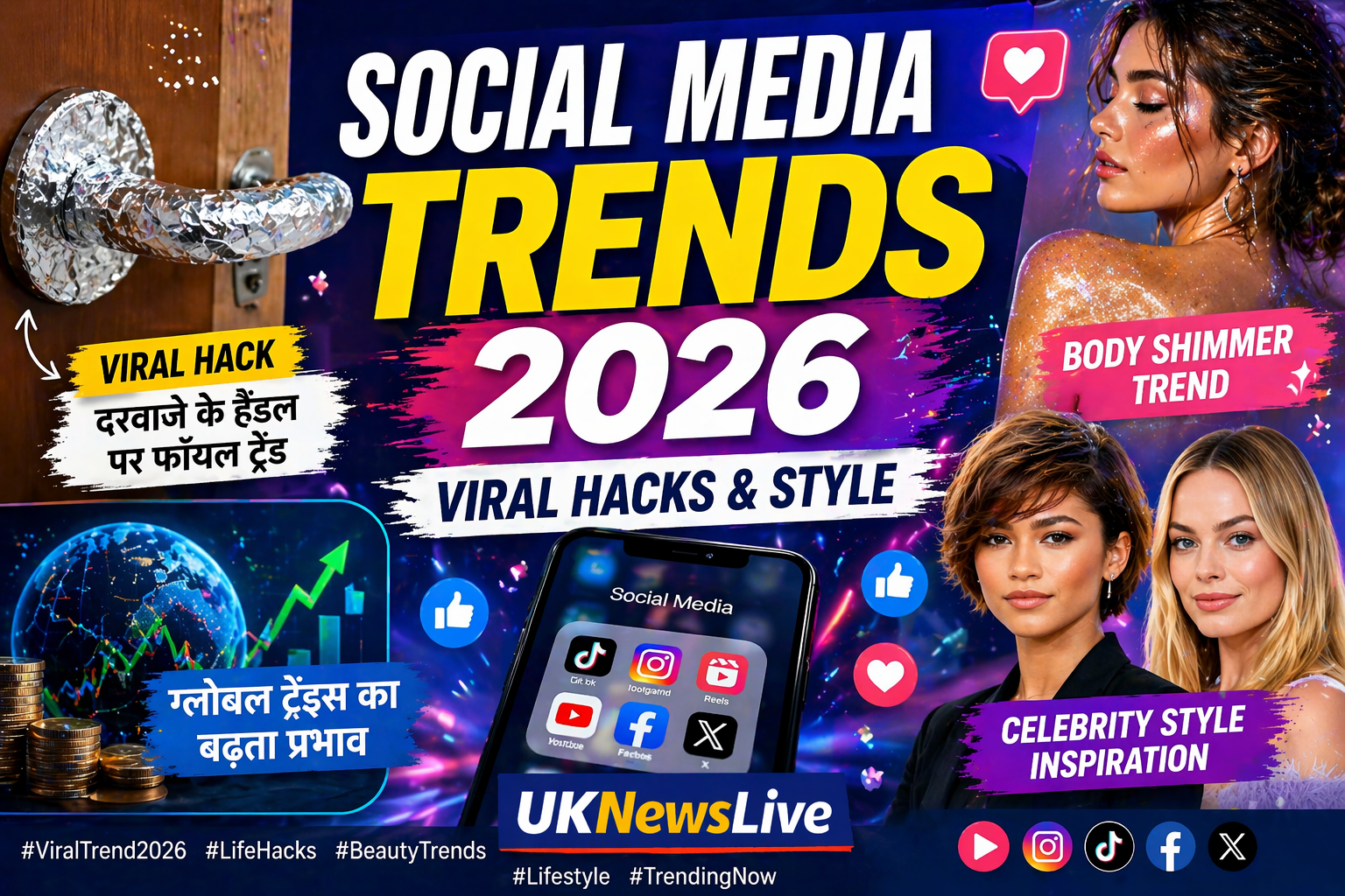 सोशल मीडिया ट्रेंड 2026 : 2026 में सोशल मीडिया प्लेटफॉर्म्स पर नए-नए ट्रेंड्स तेजी से वायरल हो रहे हैं। DIY हैक्स, ब्यूटी ट्रेंड्स और लाइफस्टाइल बदलावों ने लोगों का ध्यान अपनी ओर खींचा है, जिससे डिजिटल दुनिया में नए व्यवहार और आदतें बन रही हैं।